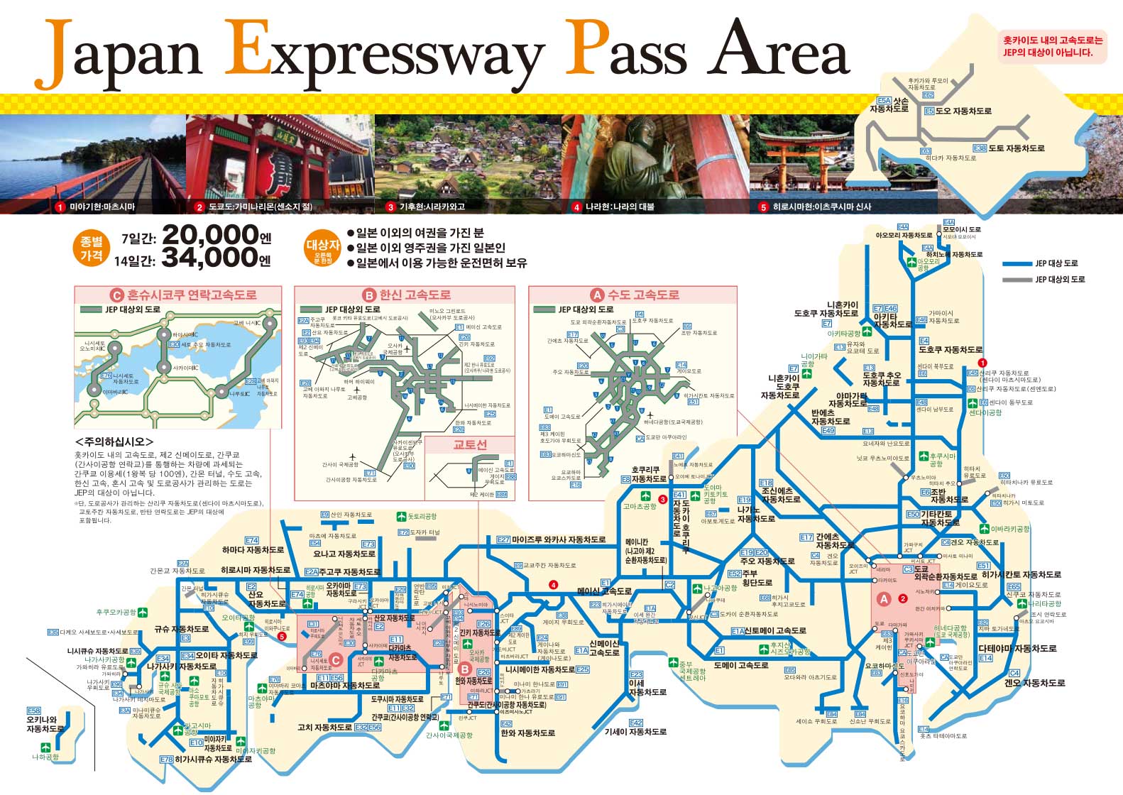일본 고속도로에서 JEP를 이용하여 마음껏 일본 전지역의 고속도로를 이용해 보세요.